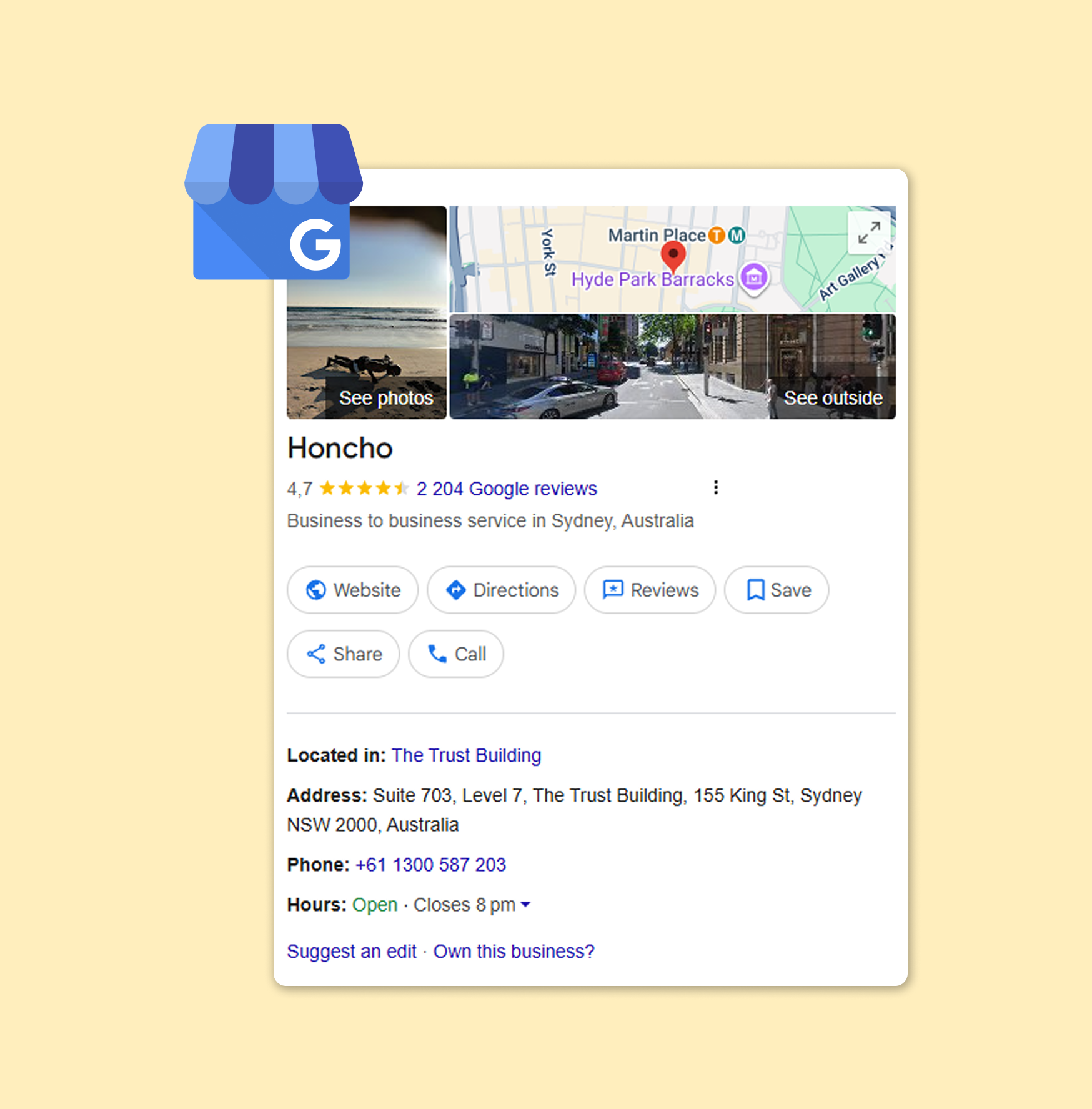Unfortunately not. Google business profiles are for businesses that have a physical location or for those that travel out to their clients to provide a service or product. If you do not have a location, consider using CBD Address to get yourself a virtual address. Once you have this top tier Sydney city address you can then use it as your location for your Google Business Profile. And based on feedback from our clients, the other big bonus is you can also use your new prestige address on your website, emails and other marketing materials